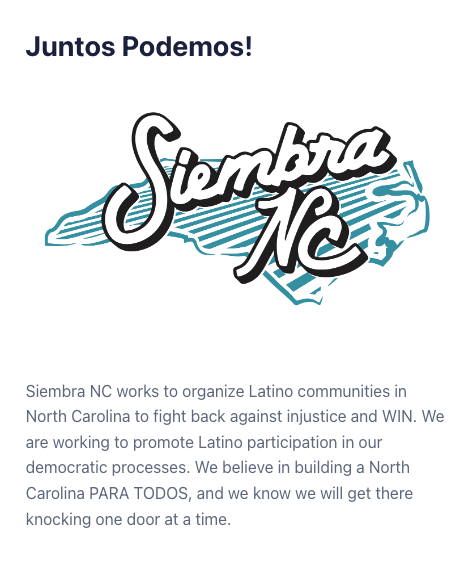 Siembra NC organizes Latinos to win el buen vivir, a better life for all, and Make NC Work is our project to make ours the best state in which to work or raise a family. Together we are creating the safest Southern state for immigrant workers and building a mandate for local elected officials to stand up to the federal attacks on all of our communities.